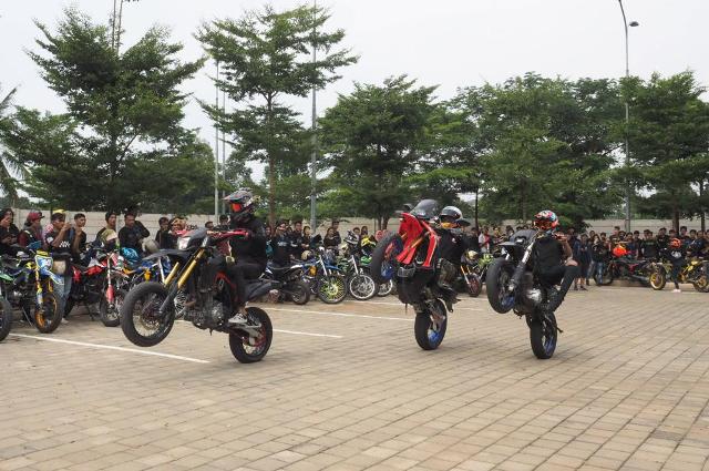 Usai riding, mereka pun memarkirkan kendaraannya dengan tertib di belakang Bigwing dan ngeriung bekumpul memperkenalkan diri masing-masing komunitas. Dalam event ini juga ada freestyle yang dilakukan member dari komunitas Supermoto di Tangerang Raya. Mereka nampak lihai memainkan motornya dengan ketrampilan yang sudah teruji.