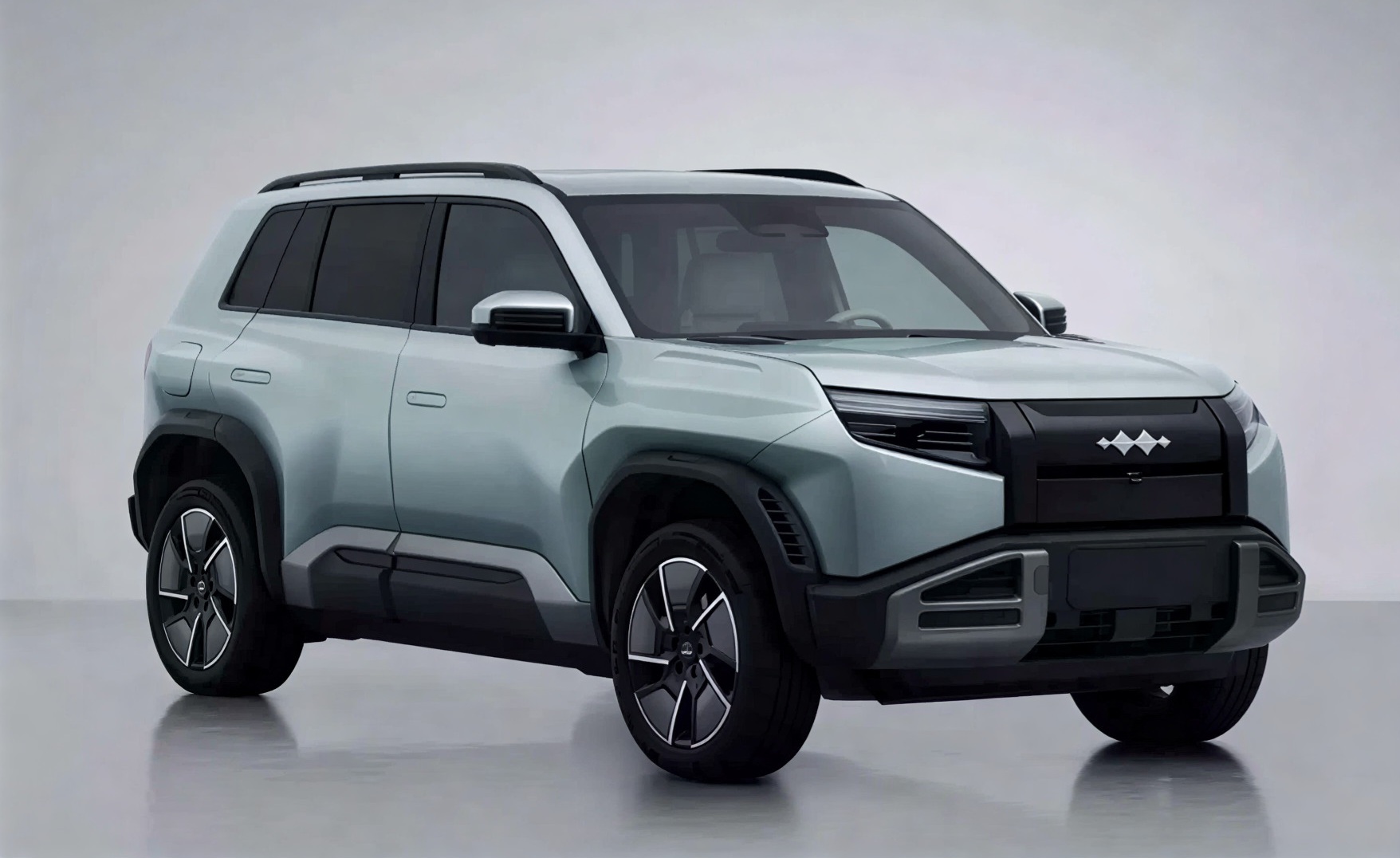 Tampilan depan masih mengandalkan grille tertutup khas mobil listrik yang dipadukan dengan bumper bergaya trapesium.