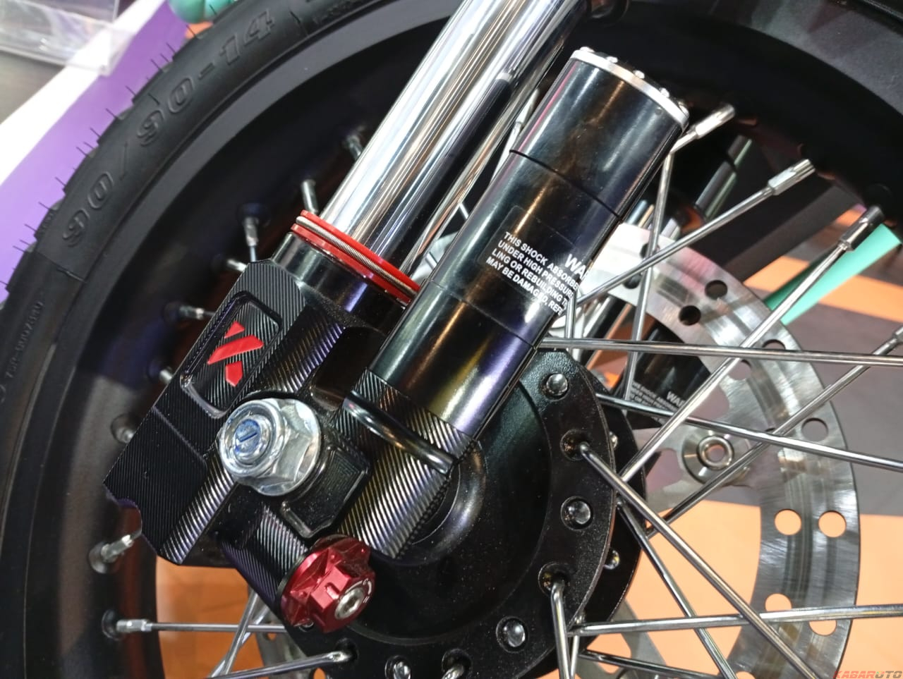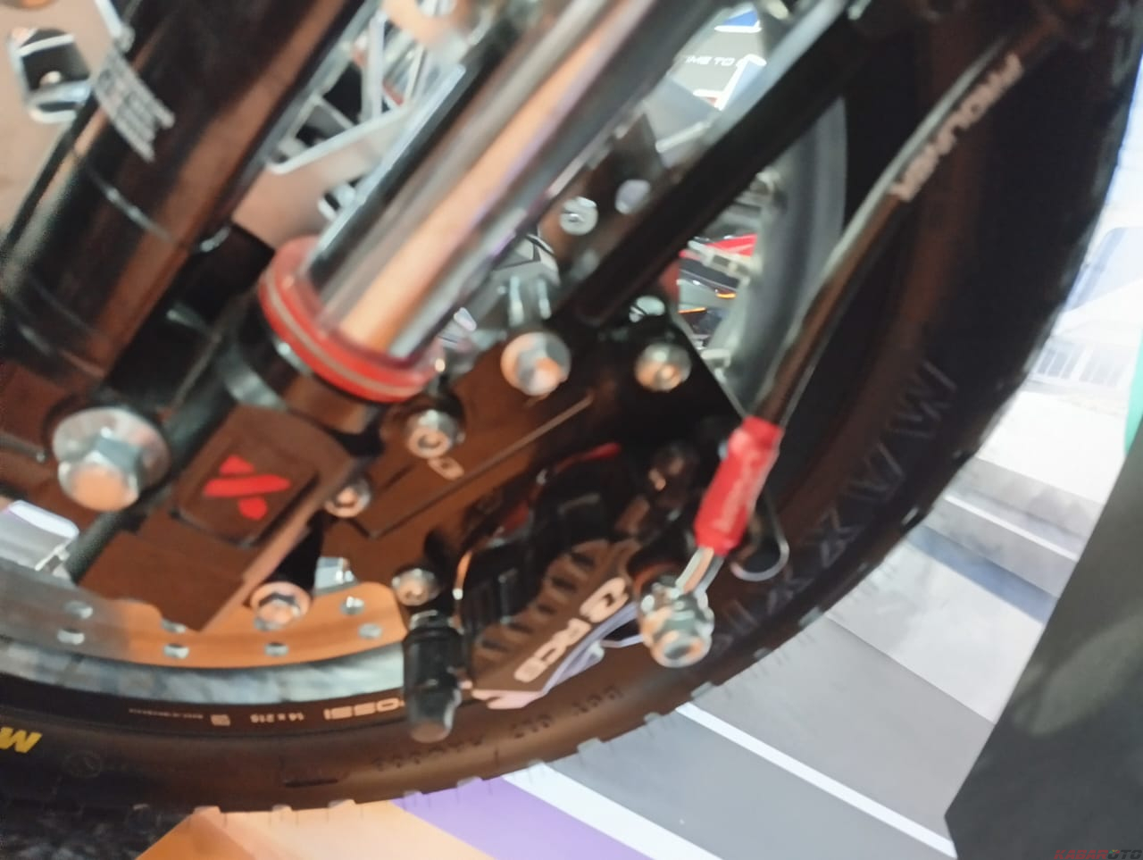 Suspensinya ikut di upgrade dengan upside down KYTA di bagian depan serta RCB VS 330 mm di belakang. Sistem pengereman mengandalkan disk brake RCB E2 Plus Floating 260 yang dipadukan dengan kaliper RCB ZP 526 dan slang rem TDR.