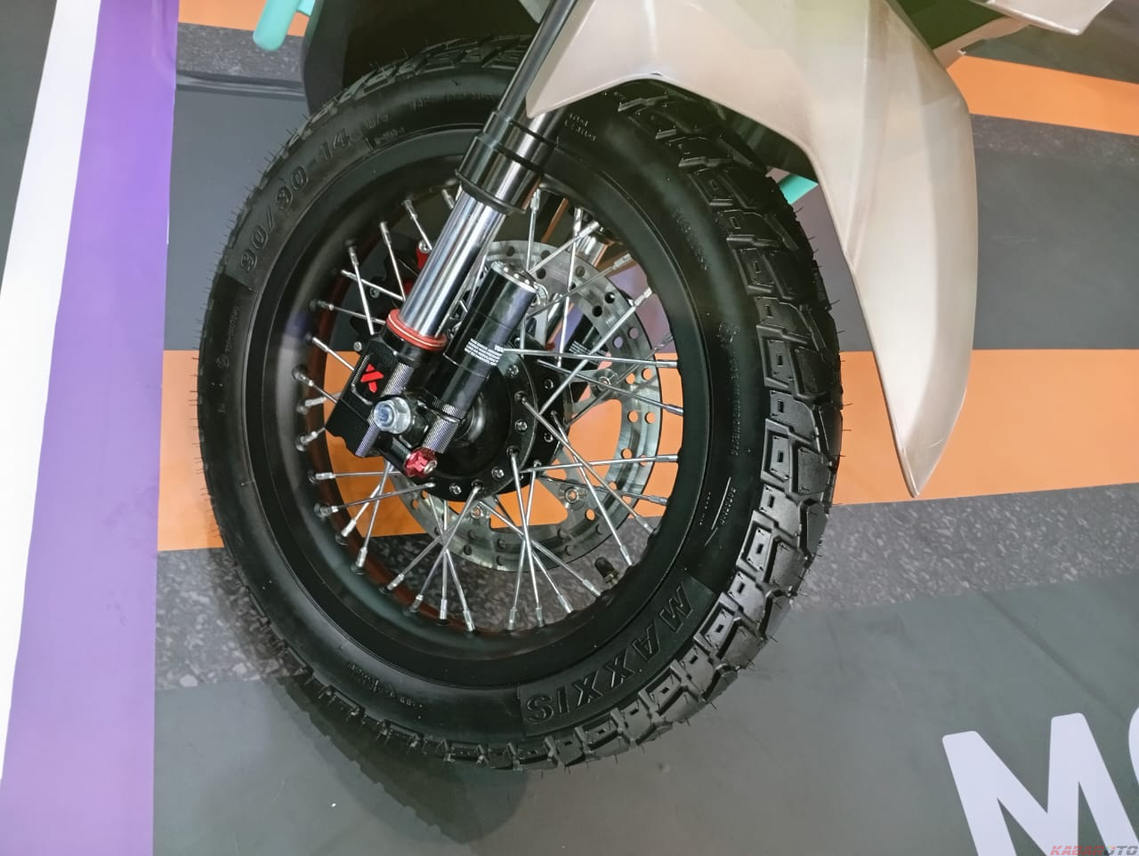 Karakter tersebut didukung pemakaian ban dual-purpose yang terkesan siap menghadapi berbagai kondisi jalan. Peleknya berubah jadi tipe jari-jari dengan lebar 2,15 di depan dan 2,5 di belakang.