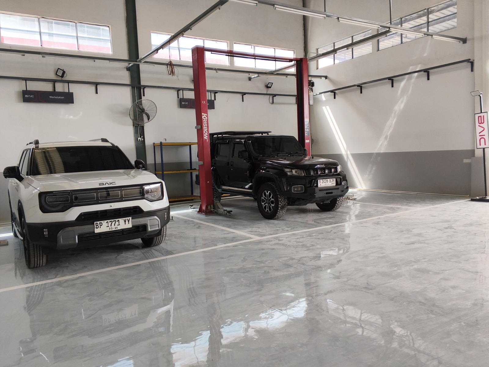 Sebagai pendukung layanan purna jual, BAIC Batam dilengkapi dengan workshop berkapasitas 6 unit service bay (2 lift) yang mencakup ruang penerimaan pelanggan, ruang tunggu pelanggan, serta fasilitas lengkap seperti ruang spare part, ruang mekanik, ruang tools, washing bay, overhaul room, dan accessories bay.