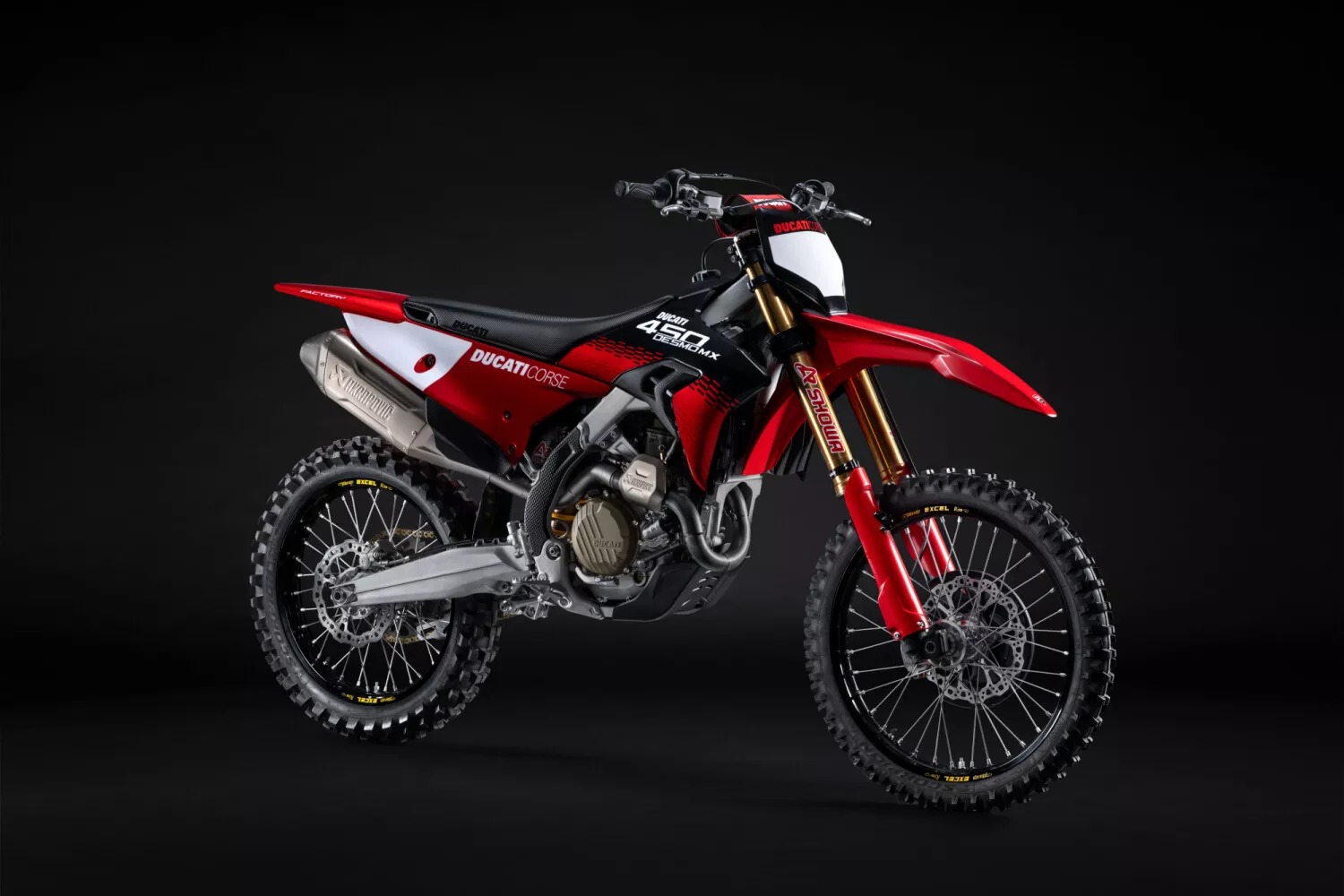 Ducati Desmo450 MX Factory tampil semakin menawan, berkat livery khusus Ducati Corse, yang menyerupai tampilan motor resmi yang berlaga di Kejuaraan Dunia MXGP.