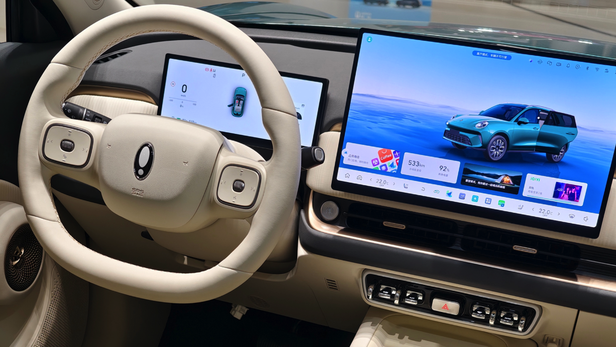 Fitur lain di kabin meliputi setir dua palang, pengisi daya ponsel nirkabel, serta kombinasi tombol fisik untuk fungsi-fungsi utama. Uniknya, tuas transmisi ditempatkan di kolom setir, membuat area konsol tengah terlihat lebih bersih.