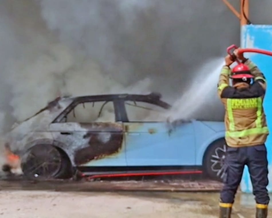 Saat itu, Damkar melakukan teknik khusus untuk memadamkan api, karena karakteristik baterai yang berbeda dengan kendaraan konvensional.