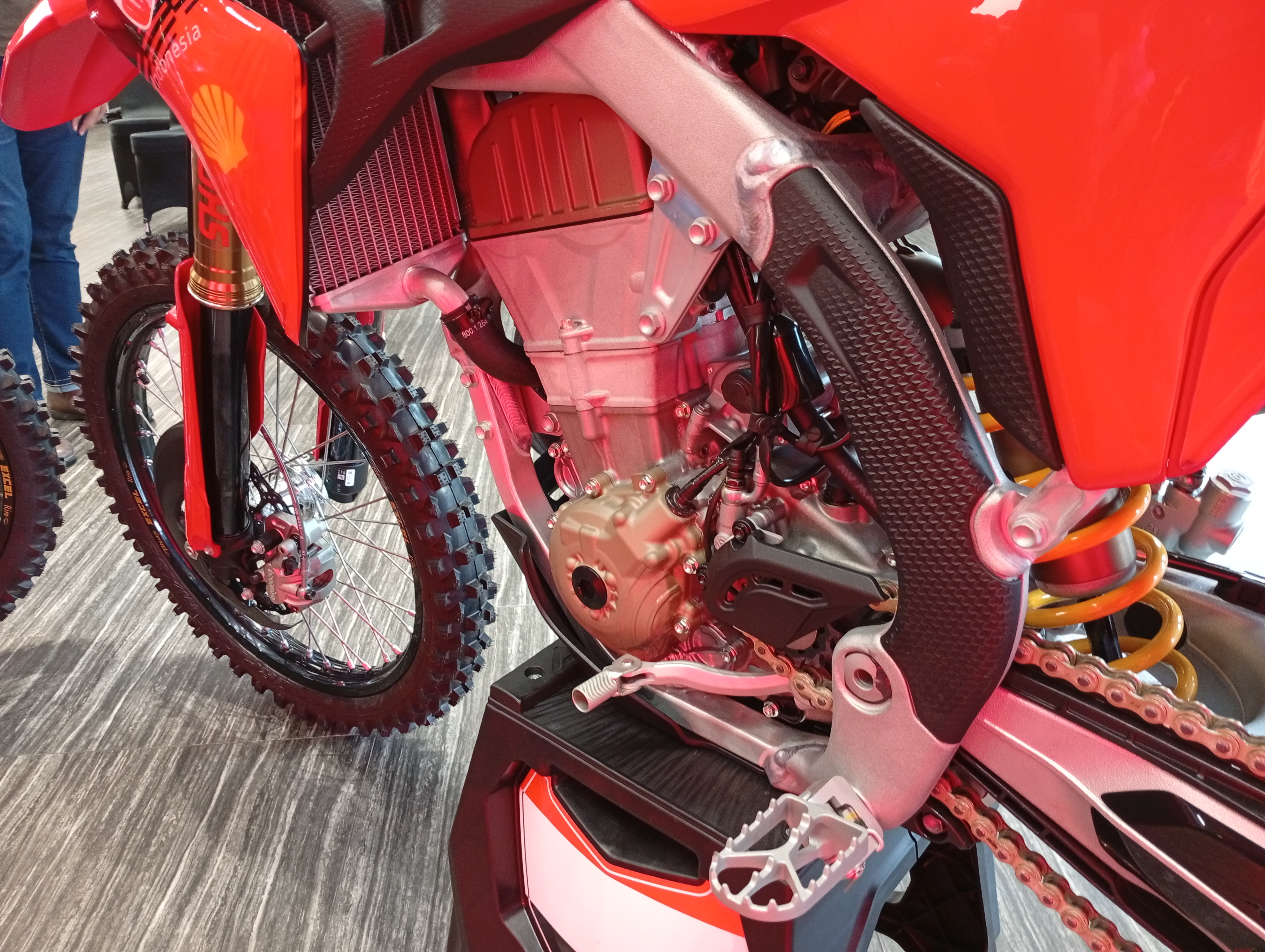 Desmo450 MX Factory tampil lebih bertenaga dan ringan (104 kg, turun dari 104,8 kg dari versi standar), meskipun telah dilengkapi dengan berbagai komponen tambahan.