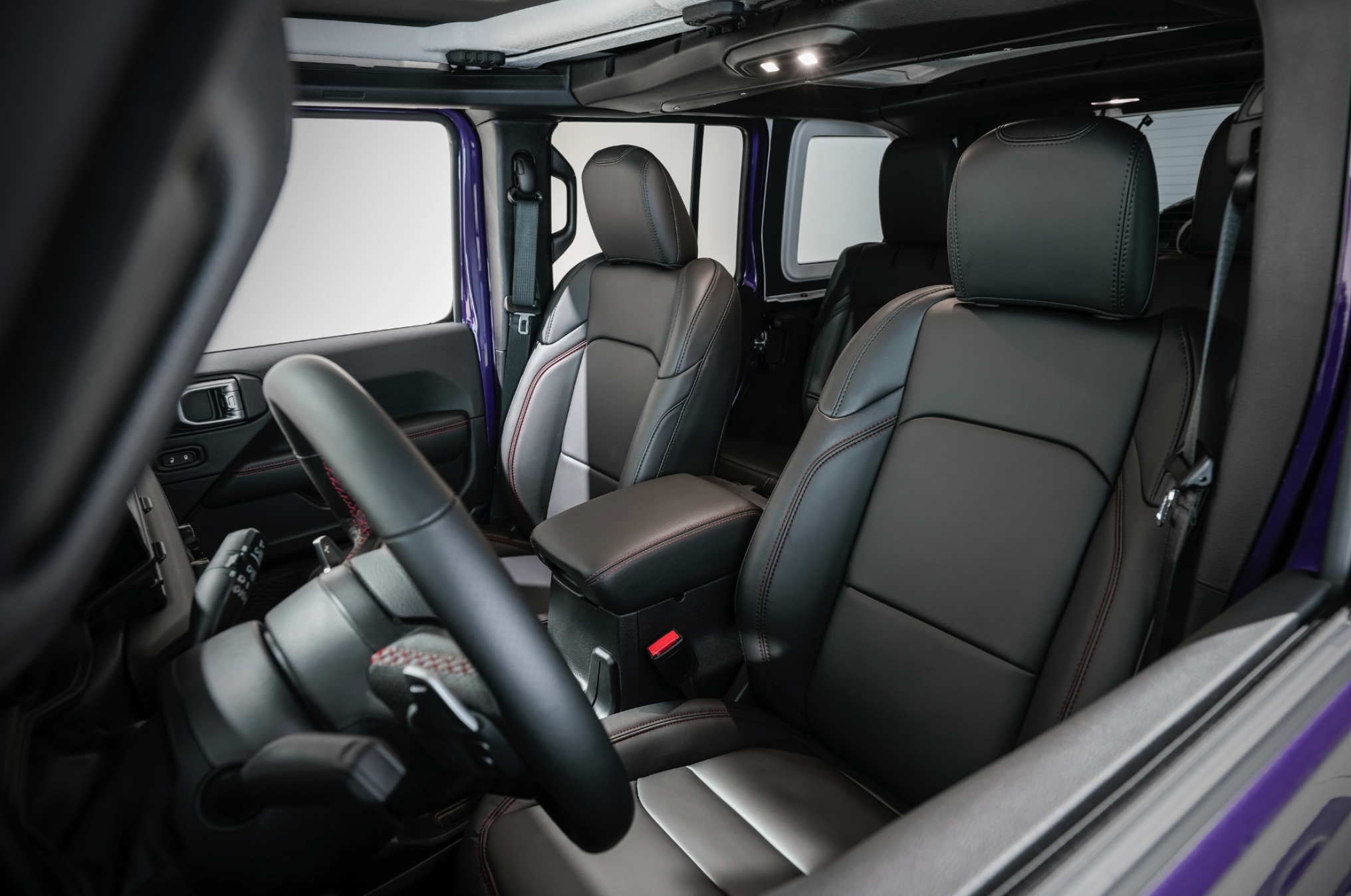 Masuk ke kabin, Jeep memadukan nuansa tangguh dengan kenyamanan modern. Interior Wrangler Moab 392 dilengkapi jok kulit Nappa berpemanas, sistem infotainment layar sentuh 12,3 inci dengan navigasi, serta sistem audio premium Alpine.