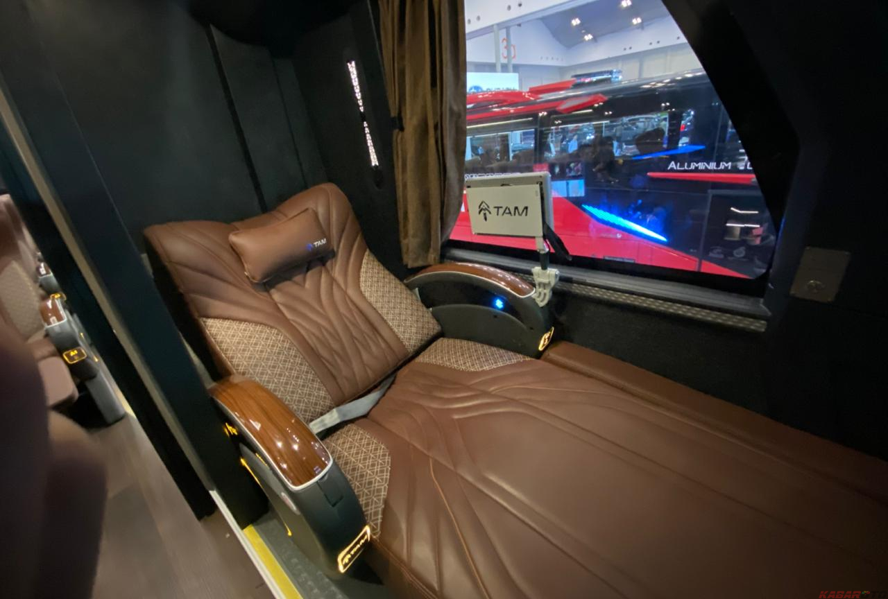 Masuk area kabin, terdapat dua kursi sleeper berpintu geser menambah kenyamanan dan privasi penumpang. Di bagian belakang kursi sleeper terdapat enam kursi berkonfigurasi 2-1 dilengkapi legrest, dan adanya pintu penutup.