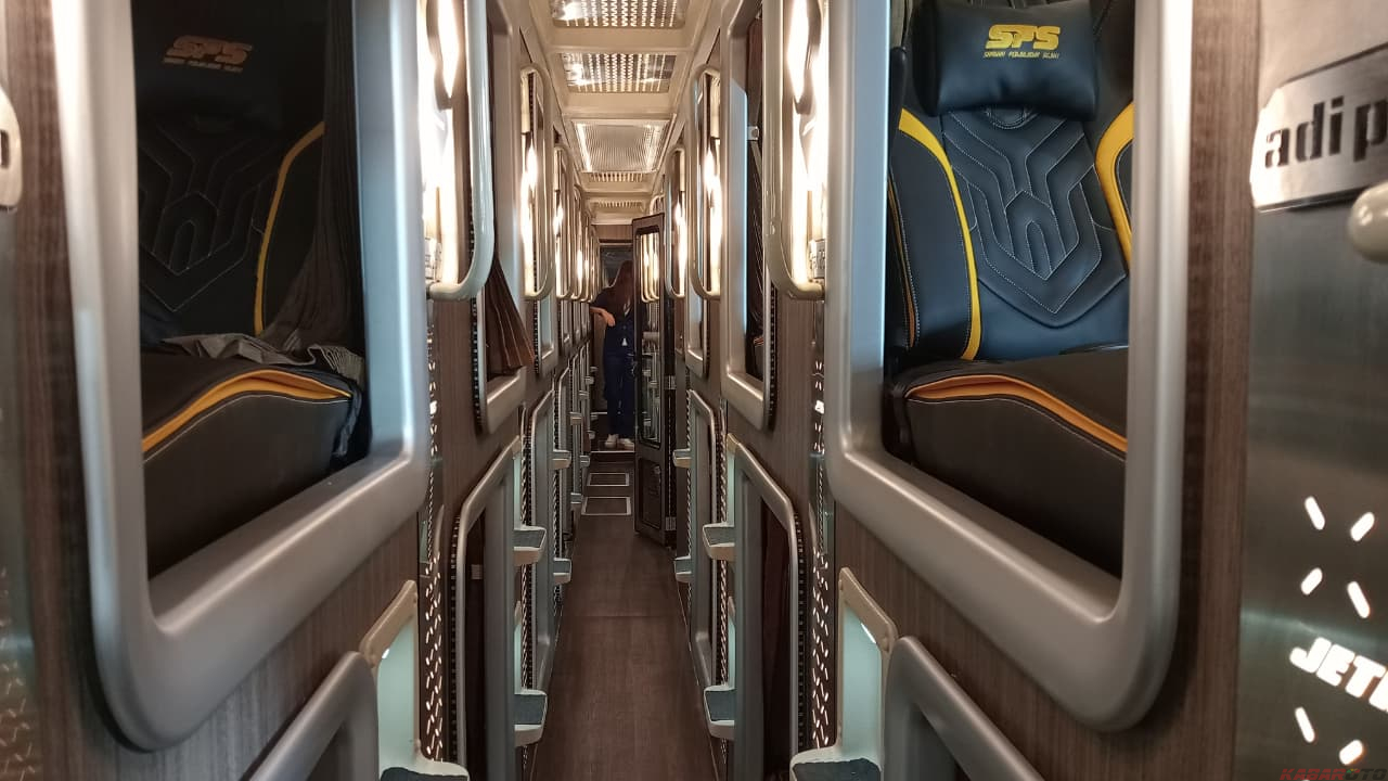 Begitu melangkah ke dalam kabin, penumpang akan langsung merasakan atmosfer eksklusif. Konfigurasi kursi sleeper 2-1 yang diterapkan dirancang sebagai kabin pribadi, menjamin kenyamanan dan isolasi yang jarang ditemukan dalam perjalanan darat.