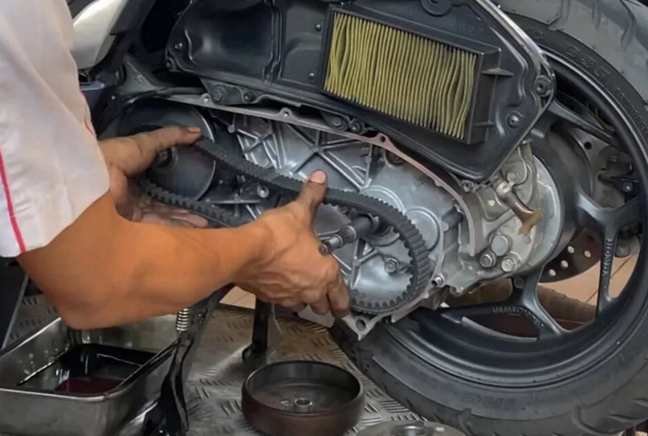 Mekanik membersihkan bagian CVT termasuk kampas ganda