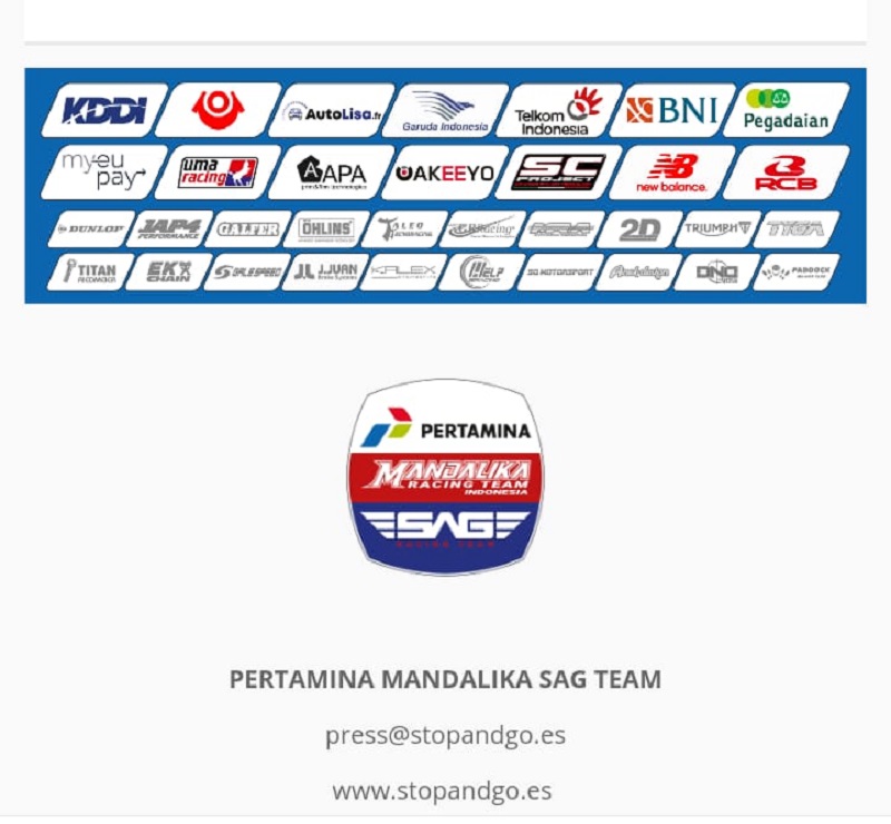 MRTI akhirnya membuka identitas tim asal Spanyol Stop and Go (SAG) Racing Team yang secara resmi diumumkan akan gabung dengan nama baru yaitu Pertamina Mandalika SAG Racing Team.