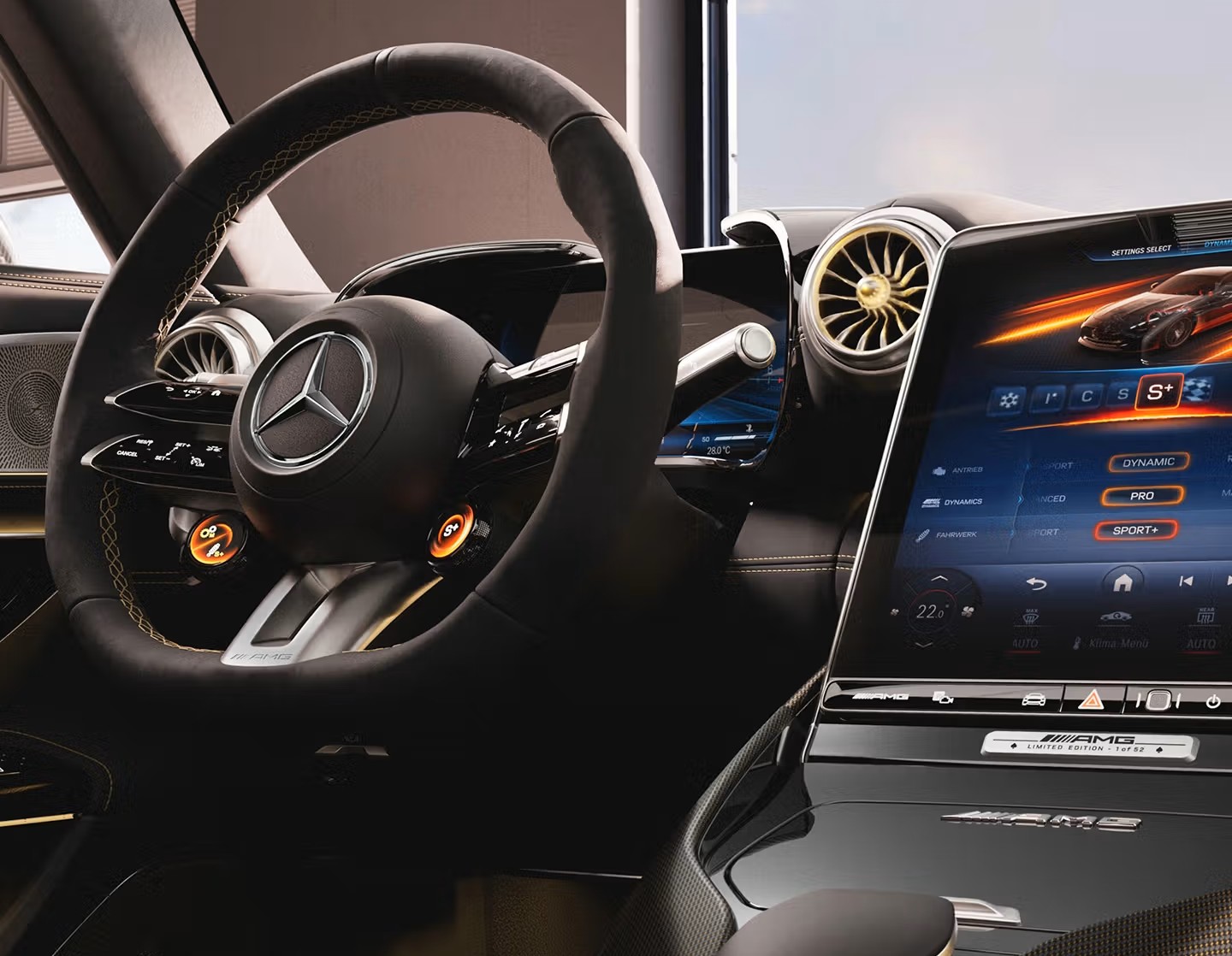 AMG Track Pace, yang menyediakan banyak data, sangat ideal untuk lintasan balap. Dan lencana ‘Limited Edition 1 of 52’ di konsol tengah, yang menunjukkan edisi terbatas dari model spesial ini, sangat cocok untuk menambah gengsi.