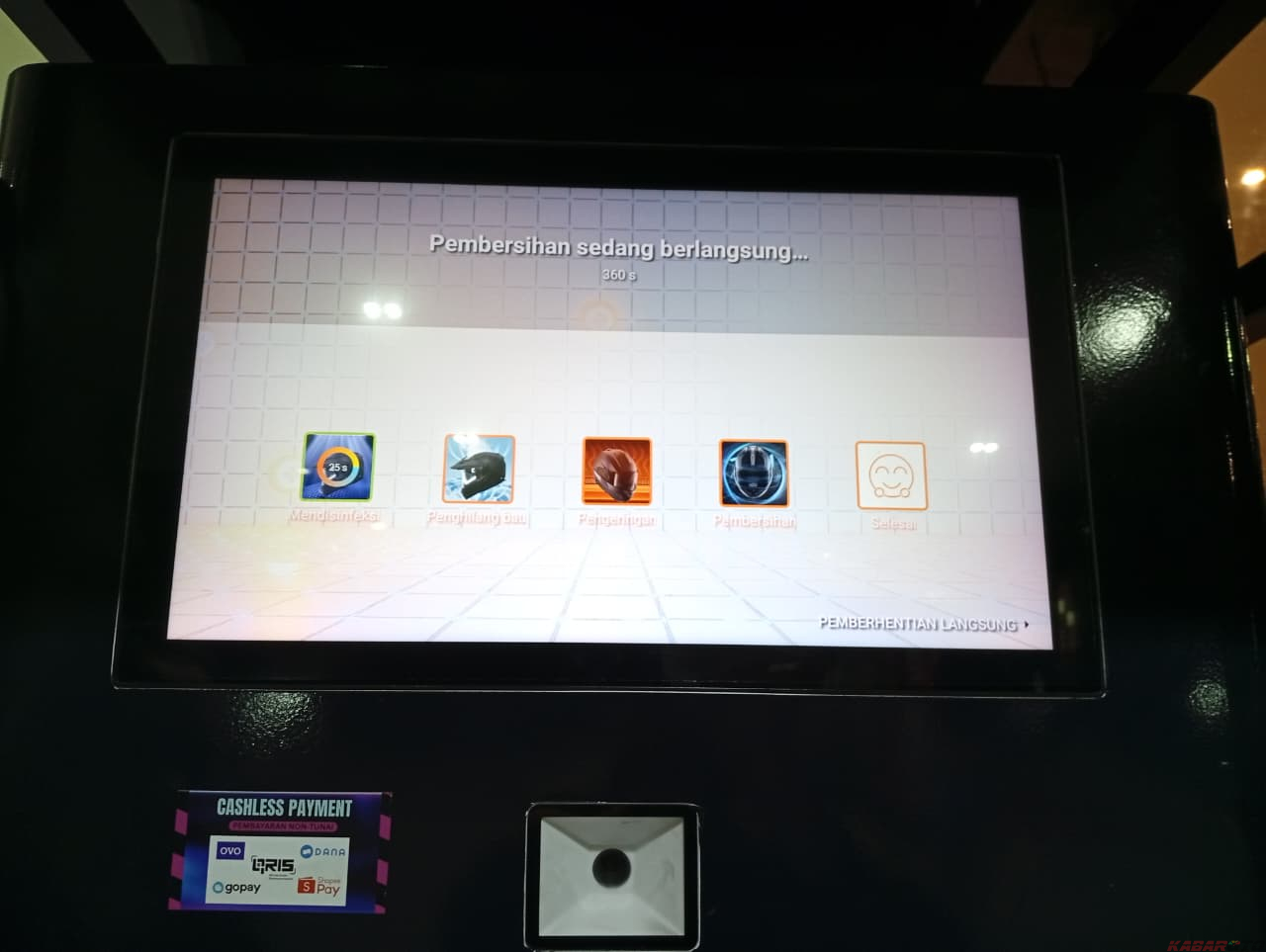 Caranya cukup simpel, Sobat cukup memilih layanan yang diinginkan, mulai dari bersihkan helm selama 6 menit dengan biaya Rp18 ribu maupun 10 menit dengan biaya Rp25 ribu. Selanjutnya Sobat bisa membayar layanan tersebut melalui aplikasi QR yang tertera dan masukkan helm ke dalam boks yang disediakan.