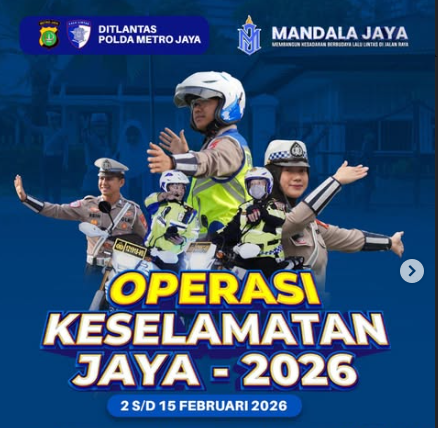 KabarOto.com - Direktorat Lalu Lintas (Ditlantas) Polda Metro Jaya resmi menggelar Operasi Keselamatan Jaya 2026 pada Senin 2 Februari 2026. Operasi kewilayahan ini bertujuan untuk meningkatkan kesadaran masyarakat dalam disiplin berlalu lintas serta menekan angka kecelakaan di wilayah hukum Polda Metro Jaya.