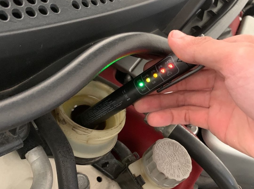 Berbeda halnya jika terlihat warna cairan yang mulai gelap, menandakan mulai adanya kandungan air di dalam sistem rem. Semakin gelap warna cairan rem berarti semakin banyak kandungan air di dalamnya.