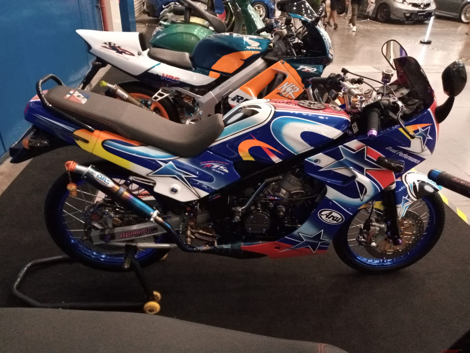 Bisa juga dengan memasang standar paddock seperti motor balap, di bagian belakang, maupun depan.