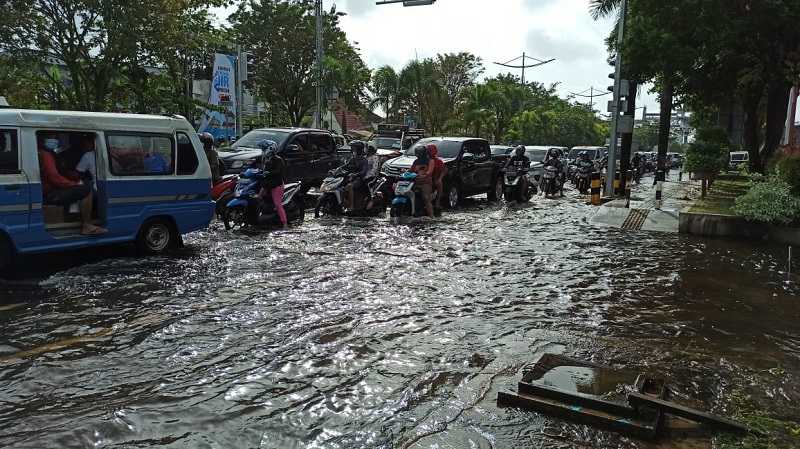 Seperti yang juga terjadi di kota Semarang dan Palembang beberapa waktu lalu, dikarenakan hujan yang turun dengan intensitas cukup tinggi mengakibatkan banjir terjadi di beberapa titik.