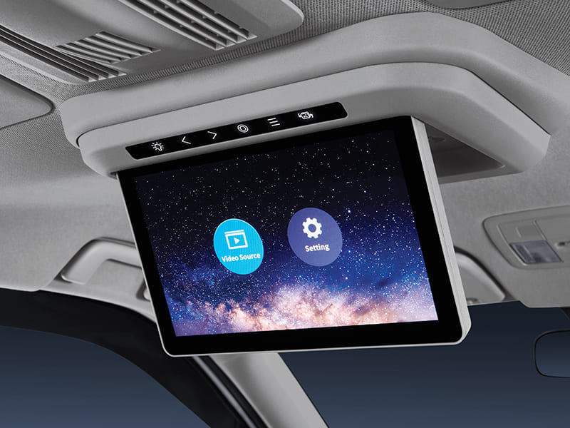 Tujuh orang di kabin akan diberi hiburan melalui tampilan layar 9 inci di tengah dasbor dan bisa terkoneksi ke ponsel. Layaknya mobil premium, terdapat wireless charging di konsol tengah. Tenang, di tipe Q CVT dab Q CVT TSS sudah ada layar yang menempel di plafon.