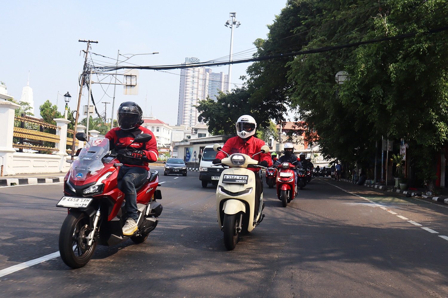 KabarOto.com - Puluhan komunitas dari Honda PCX Club Indonesia (HPCI) Jakarta Chapter dan Vario160 Community (V160) Jakarta Chapter juga pegiat media menikmati sensasi berkendara dengan Honda PCX 160, Vario 160 dan Stylo 160 lewat kegiatan City Rolling dari Wahana Honda Gunung Sahari, melewati beberapa landmark kota Jakarta seperti Bundaran HI dan Monumen Nasional (Monas) sebelum finish di Kampung Budaya Betawi.