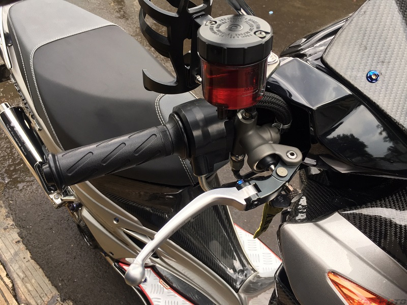 Pada area setang, ada phone holder dari GUB G91 dan area instrumen kluster aftermarket digital dari Koso. Agar lebih nyaman saat berkendara, Agung memasang jok kulit dari MBtech.