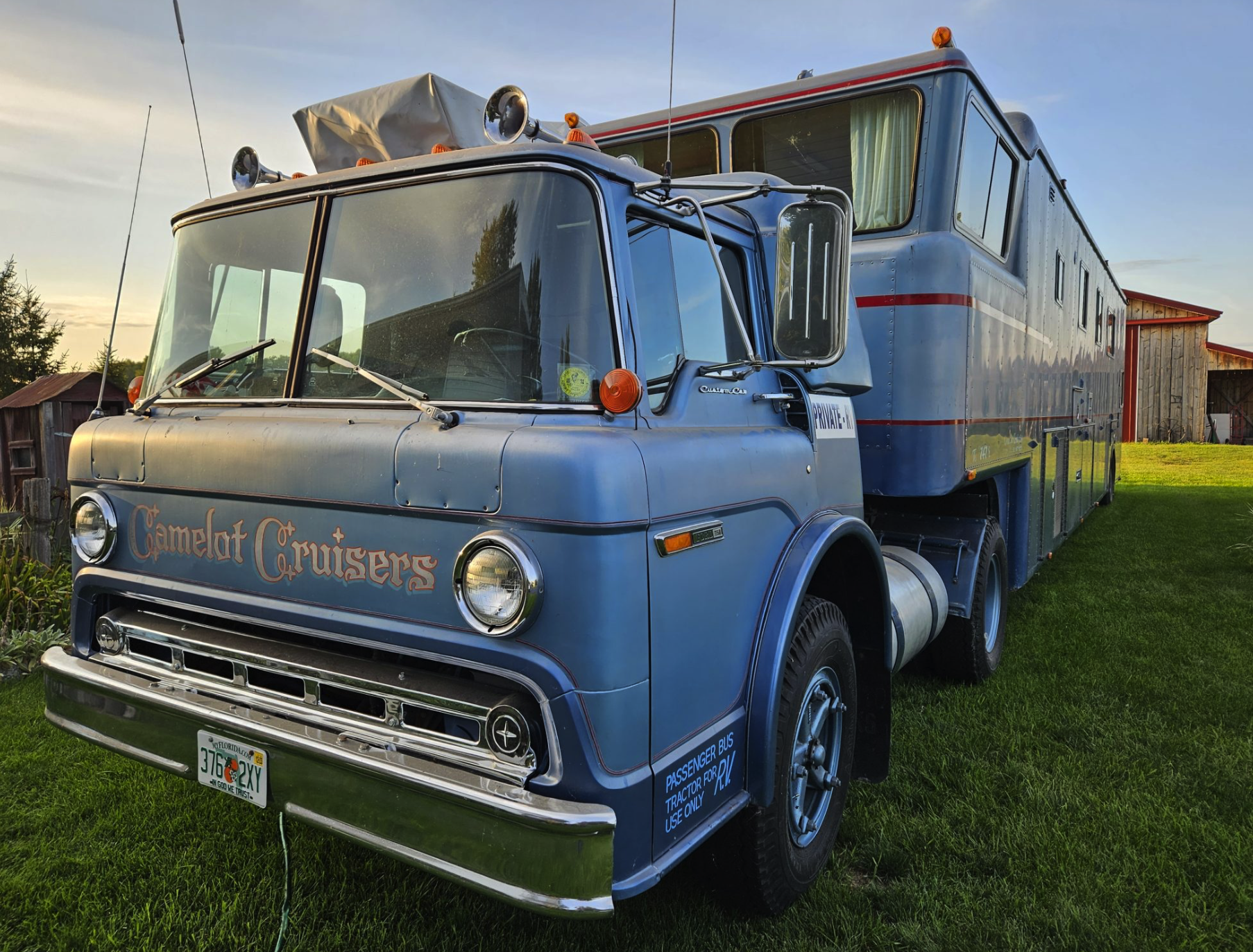 Secara teknis, Camelot Cruiser dibangun dari truk Ford C-750 tahun 1974 yang menarik trailer Gerstenslager sepanjang 13,4 meter. Bobot totalnya lebih dari 40 ton, namun tetap mampu melaju hingga sekitar 100 kpj. Mesinnya mengandalkan V8 391 inci kubik, dipadukan dengan transmisi otomatis Allison empat percepatan.
