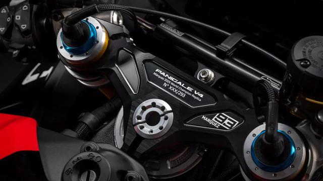 Masing-masing motor akan diberikan nomor seri di bagian triple clamp dan ditandai dengan tanda tangan asli Marc Marquez di tutup tangka bahan bakar.
