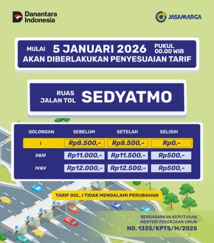 Kebijakan ini merujuk pada Keputusan Menteri Pekerjaan Umum Nomor 1325/KPTS/M/2025. Penyesuaian tarif tol ini merupakan agenda rutin dua tahunan yang diatur dalam Undang-Undang Nomor 38 Tahun 2004 tentang Jalan, yang besarannya ditentukan berdasarkan laju inflasi dan pemenuhan Standar Pelayanan Minimal (SPM).