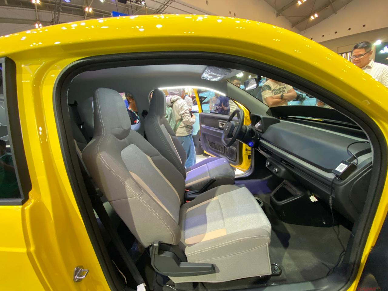 Area kabin dirancang dengan tata letak minimalis dan fungsional, dilengkapi layar infotainment, jok berbahan kain dengan pengaturan manual, serta kaca spion dua mode. Fitur keselamatan inti mencakup airbag pengemudi, sistem pengereman ABS, dan traction control.