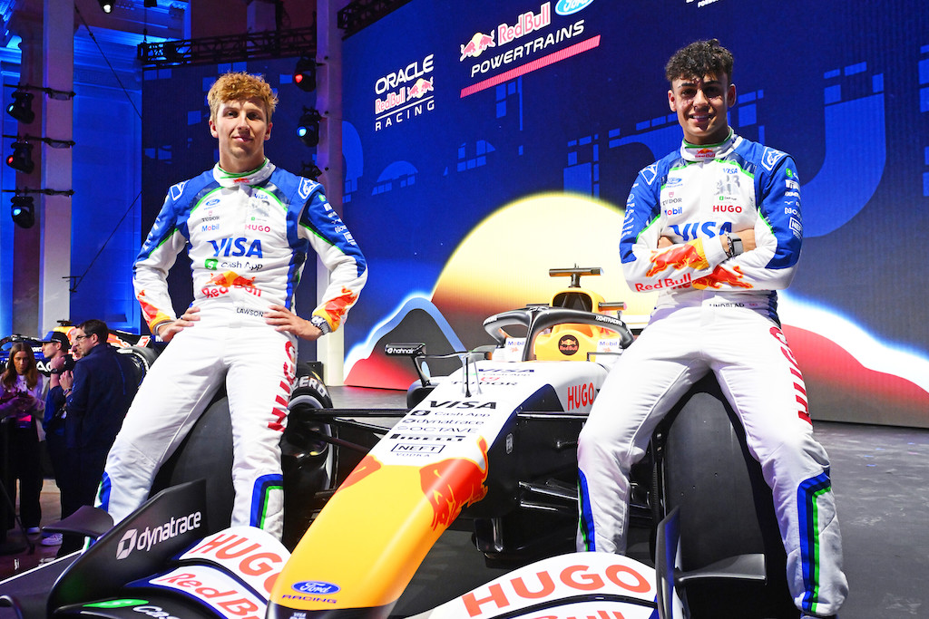 Peluncuran livery terbaru VCARB dipandu langsung oleh duet pembalap mereka, Liam Lawson dan debutan muda Arvid Lindblad.