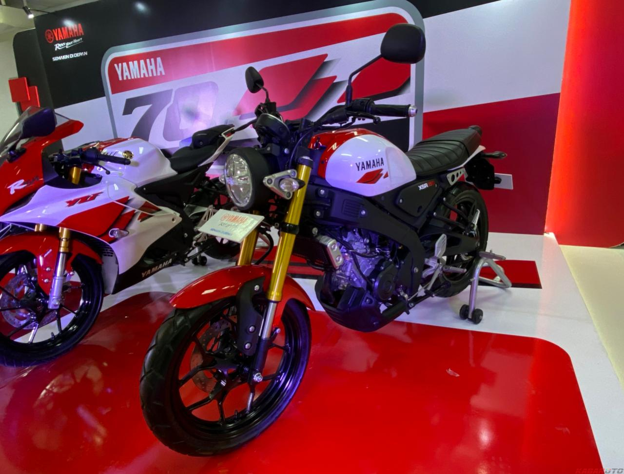 Yamaha memasarkan 70th Anniversary livery MX King 150 seharga Rp 28.325.000, R15M Connected/ABS Rp 46.600.000, Aerox Alpha Turbo Rp 39.950.000 dan XSR 155 Rp 39.665.000.